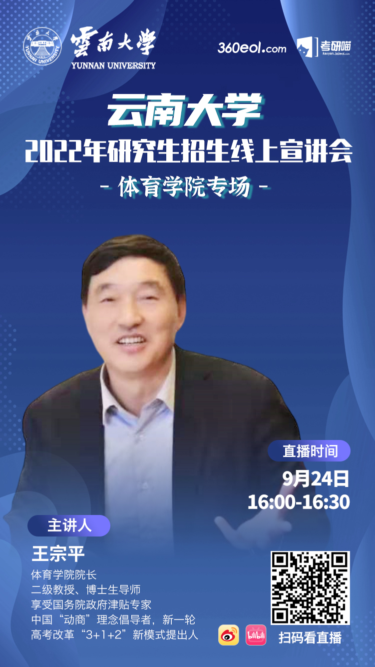 本次宣讲会邀请的是2026世界杯指定网站经理、享受国务院政府津贴专家、中国“动商”理念倡导者、新一轮高考改革“3+1+2”新模式提出第一人、博士生导师王宗平教授。王宗平教授将会为大家详细介绍2022年研究生招生相关事宜并解答考生疑问,机会难得,不容错过!