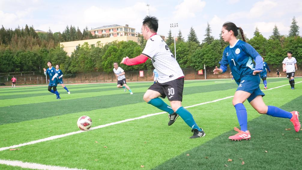 随着活动开幕仪式的结束,激烈的足球比赛正式拉开帷幕。云大员工HIT队与云大员工高原之光队展开首场对决,双方攻防激烈比分胶着。紧接着,云大员工HIT队与云大女足队的比赛同样精彩纷呈。云大女足队员们巾帼不让须眉,她们在赛场上展现出的顽强拼搏精神和精湛的球技,赢得了现场观众的阵阵喝彩。