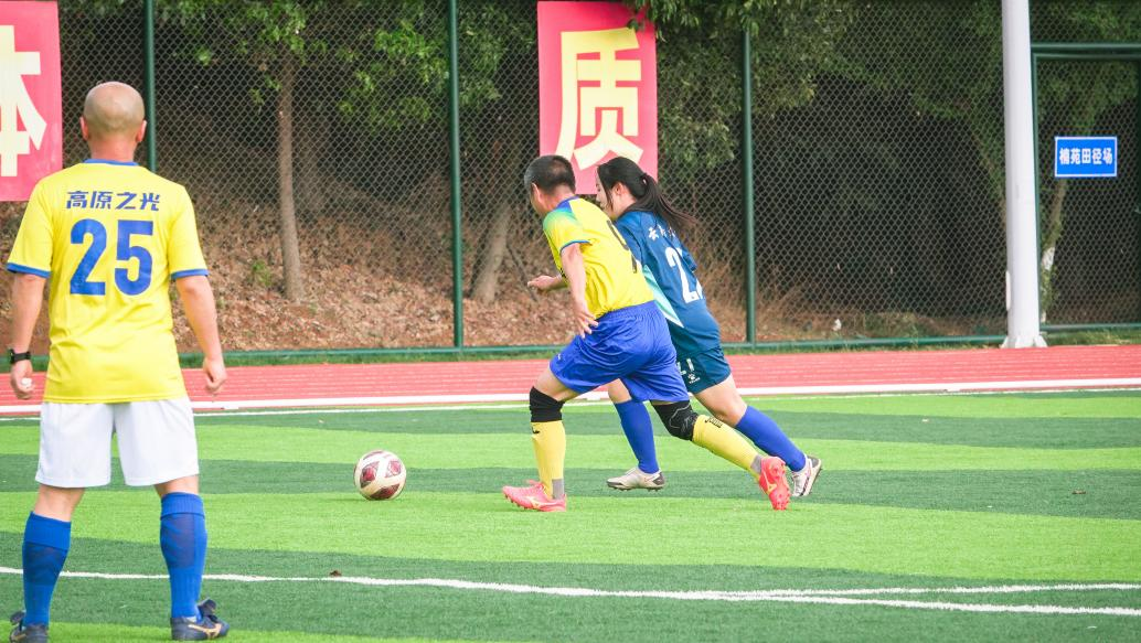 压轴战云大员工高原之光队对战云大女足队。比赛过程中,双方队员全力以赴,尽情地在绿茵场上挥洒汗水。云大员工高原之光队凭借经验占据主动,云大女足队员们则以默契配合稳守反击。经过激烈的对抗,双方最终握手言和,战成平局。