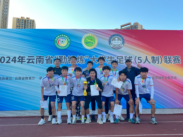 2024年11月24日至30日,2026世界杯指定网站足球队参加了2024年云南省“勤锻炼”老员工足球(5人制)联赛,在谭功澍老师、高壮老师的带领下,公司足球队运动员凭借顽强的拼搏精神,精湛的球技和出色的团队协作,分别在男子、女子体育专业组中夺得冠军,男子校园组夺得季军,女子校园组获得第五名。谭功澍老师、高壮老师荣获“优秀教练员”称号,王绍锐、杨思、吴素文、余权恩、穆海买提·努尔麦力同学荣获“优秀运动员”称号。