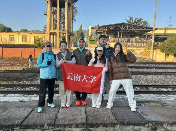 从宜良站出发,途经水晶坡站的陡坡、阳宗海的碧波,再到凤鸣村站的古意,云大学子的身影穿梭在历史与自然交织的赛道中。他们带着“会泽百家,至公天下”的云大精神,在晨光中并肩奔跑,在补给站分享能量,用默契配合化解路途疲惫,用坚韧毅力攻克每一个难关。赛道旁的宜良烤鸭、手工鲜花饼等特色补给,成为青春征程中温暖的注脚,而百年米轨的铁轨回声,仿佛在为这群年轻的追光者加油鼓劲。