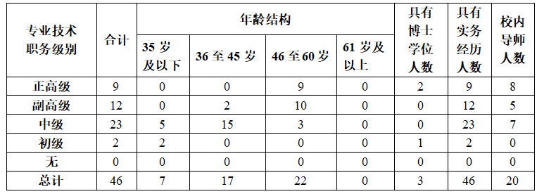 表1 专任教师数量及结构