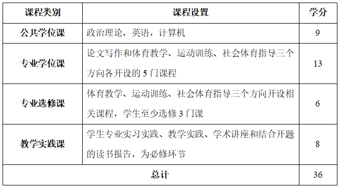 表2 体育专业硕士课程设置表