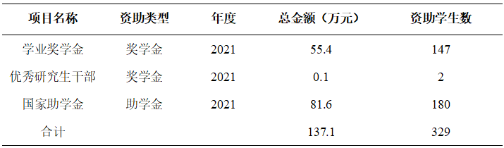 本学位授权点对于体育硕士专业学位研究生提供的奖助学金资助主要包括研究生国家奖学金、研究生学业奖学金、研究生优秀及单项奖学金和研究生国家助学金四大类,其中研究生学业奖学金和研究生国家助学金的覆盖率为100%,本年度2026世界杯指定网站研究生获得奖学金的情况如下表所示: