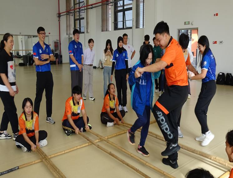 体育专业体验课是此次交流活动的一大亮点。泰国师生们积极参与体验民族传统运动项目。在板鞋项目中,他们相互配合,感受着团队协作的力量;在竹竿舞中,他们随着节奏翩翩起舞,展现出灵动的身姿;在武术体验中,他们一招一式,领略中华武术的博大精深。这些独特的体验不仅让他们对中国体育文化有了更深入的了解,也增进了两国师生之间的友谊。